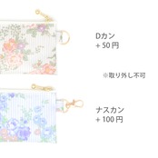 更にタブにボールチェーン(+30円)、キーリング(+50円)、Dカン(+50円)、ナスカン(+100円)、内側Dカン(+100円)もつけられます(オプション料金は加算されます)