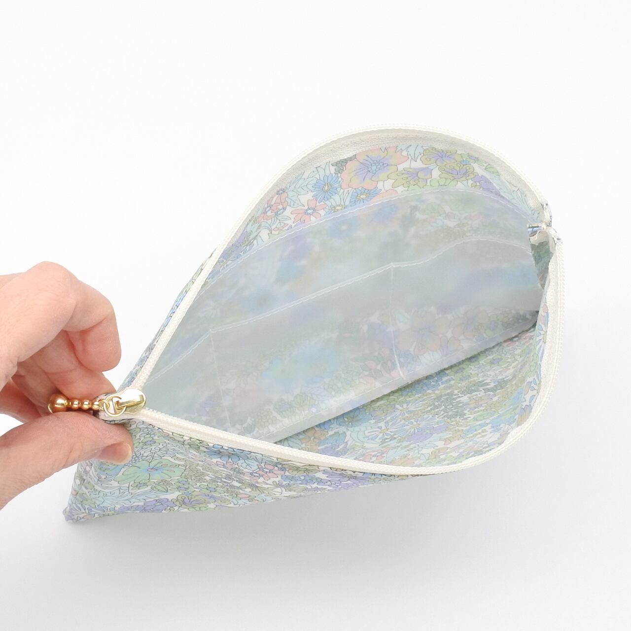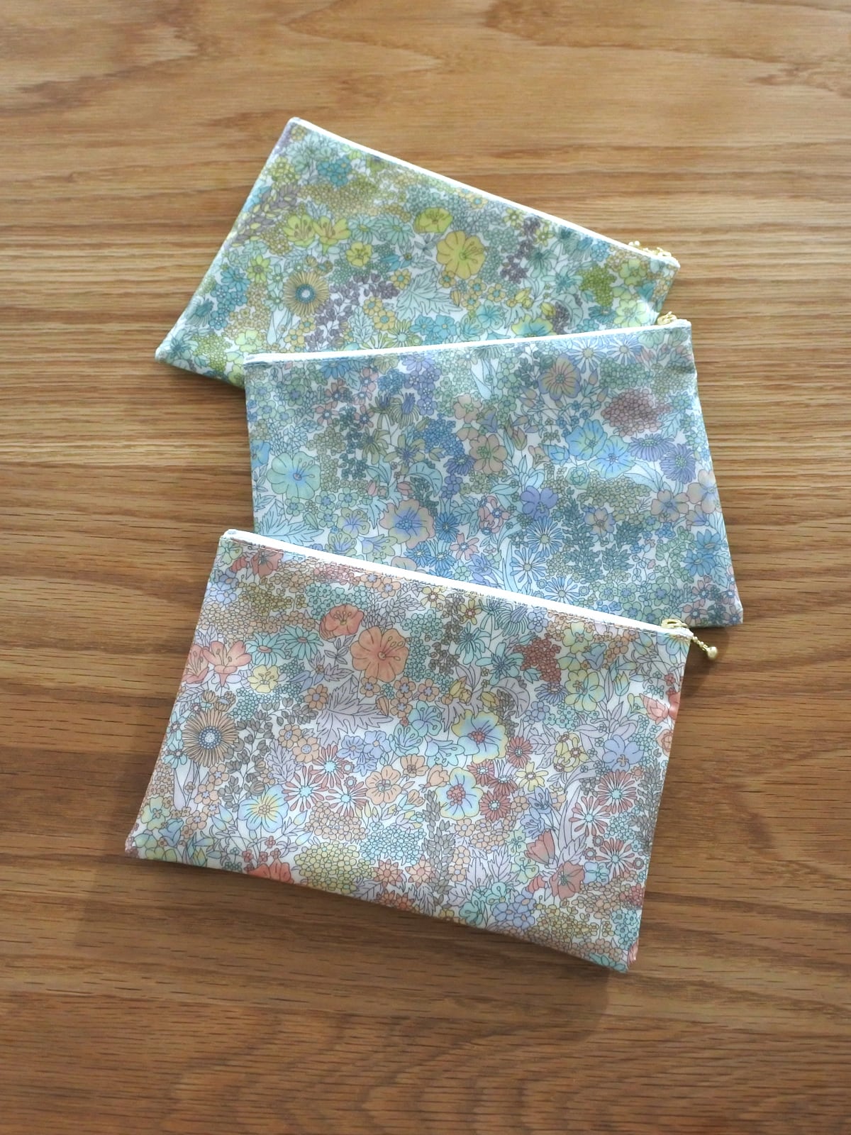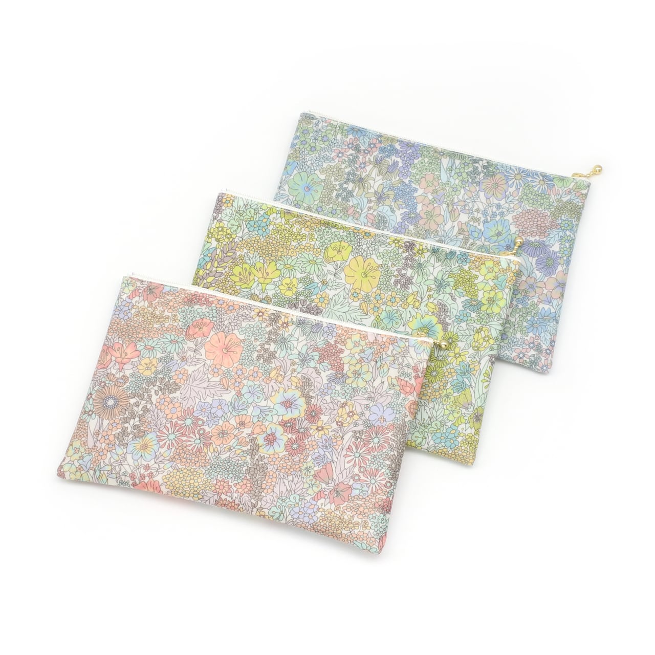 リバティ マーガレット・アニー(Margaret Annie)のラミネート(ビニールコーティング ビニコ)生地を使用した、大きめのフラットポーチです。