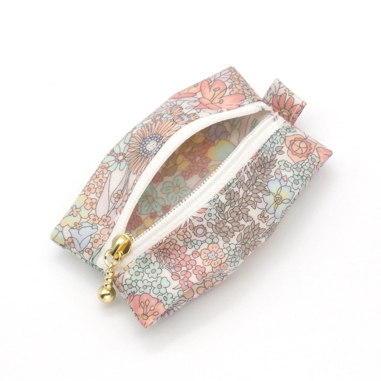 リバティ マーガレット・アニー(Margaret Annie)のラミネート(ビニールコーティング ビニコ)生地を使用した、小さな隠しマチ付きのポーチです。
