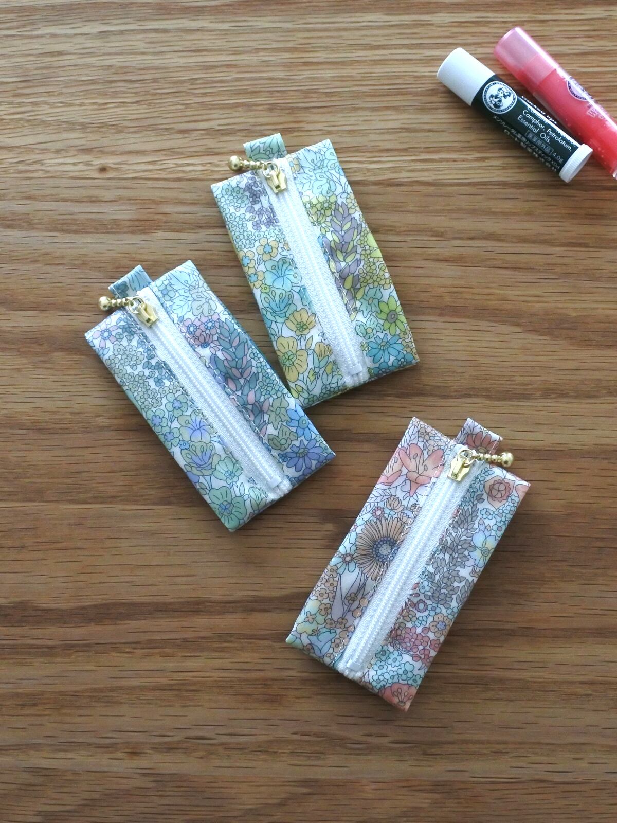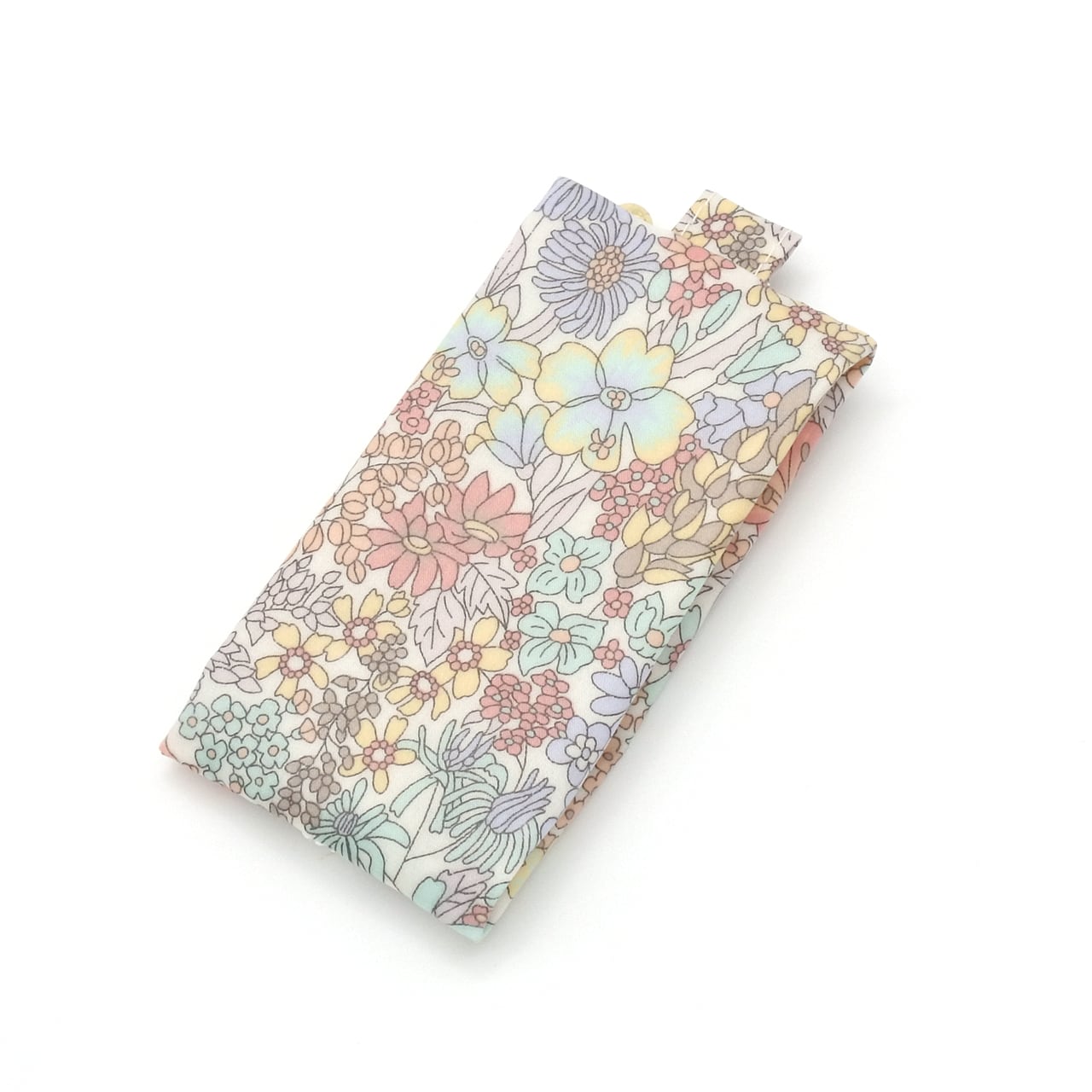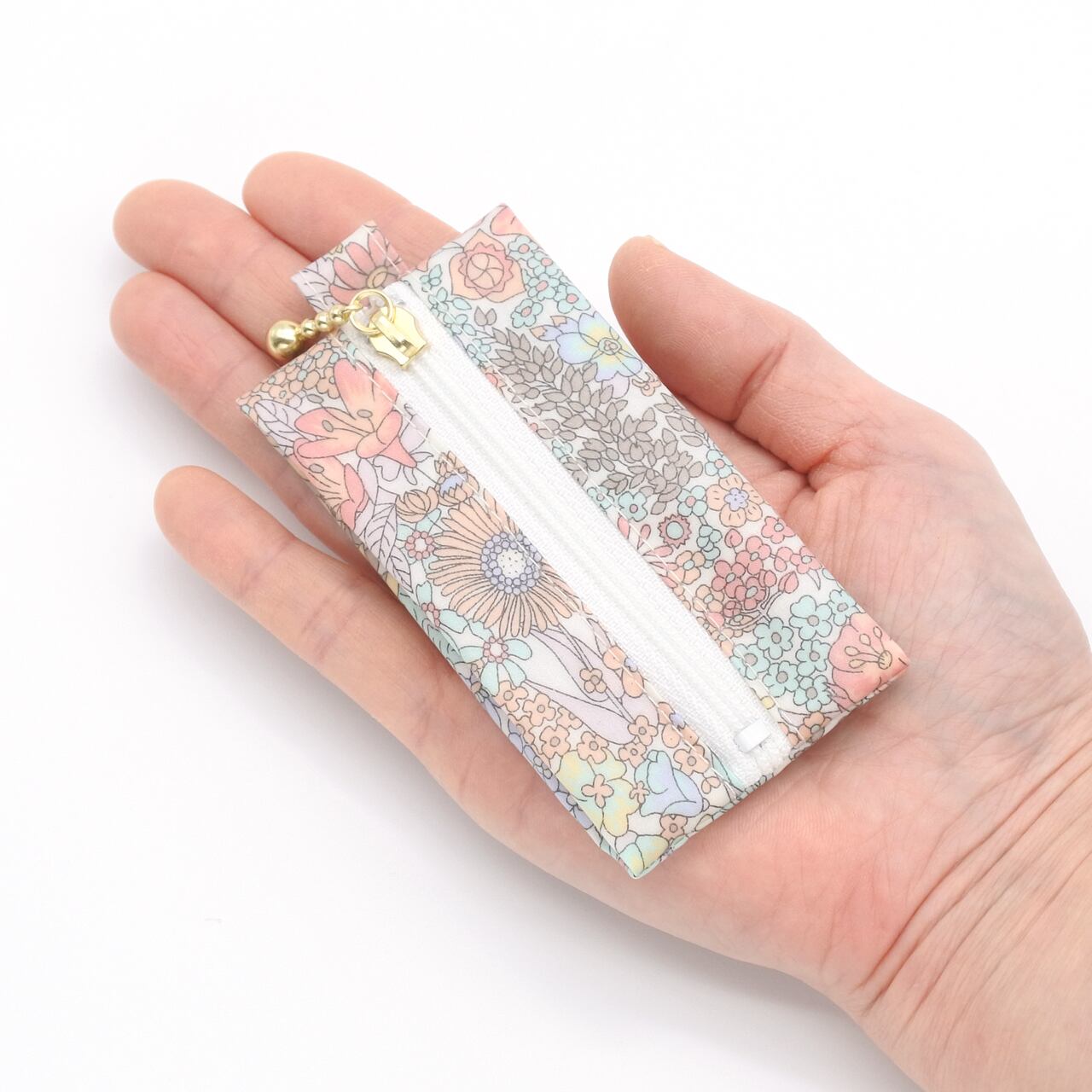 リバティ ラミネートの隠しマチ付きミニポーチ マーガレットアニー リップケース リップポーチ リップクリーム入れ 縦型ポーチ 小物入れ 防水