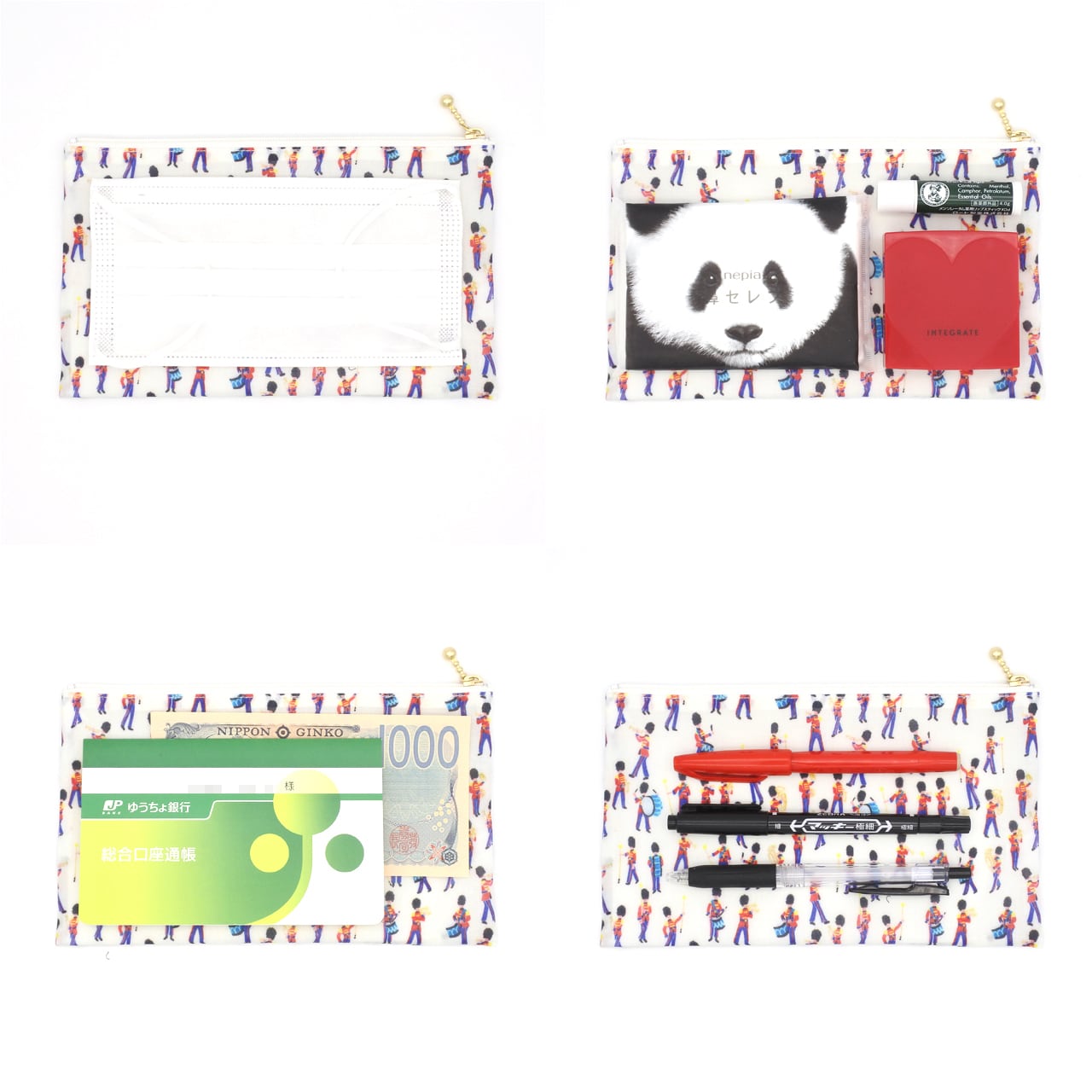リバティ ラミネートのフラットポーチ Lサイズ ミュージカルマーチ マスクポーチ ペンポーチ 化粧ポーチ ロンドン