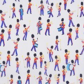 ミュージカルマーチはイギリスの伝統行事「軍旗分列行進式」をモチーフに、軍の音楽隊がクレヨンで描かれた楽しい柄。