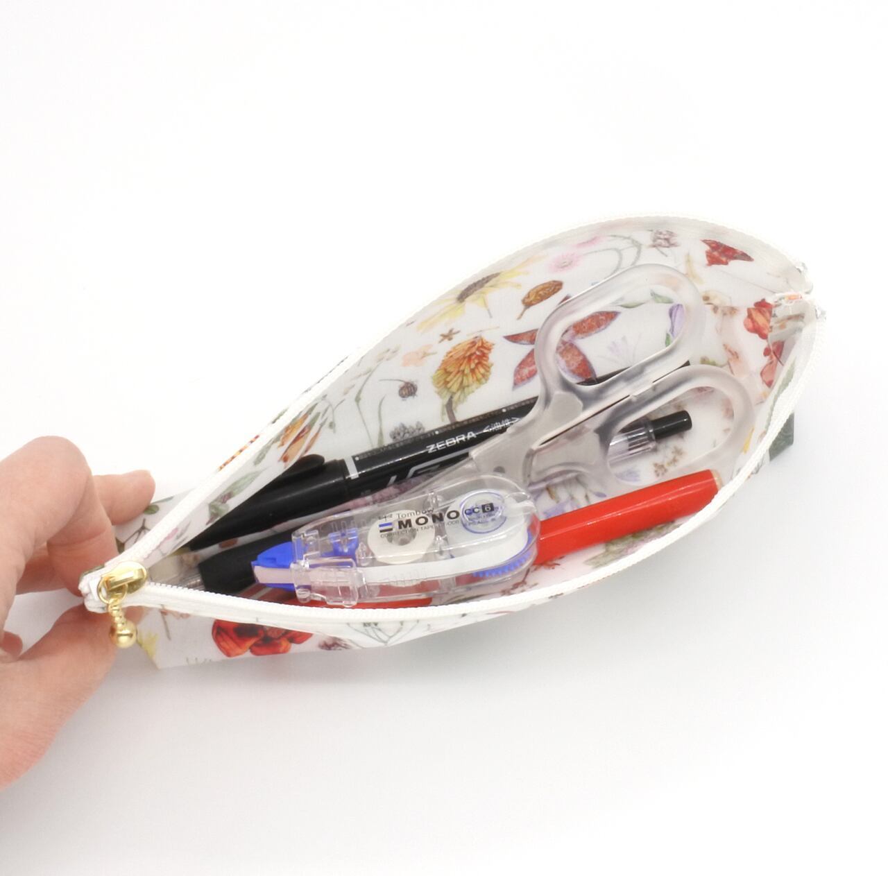 マチ付きのため、開けたまま置くことができ、たくさんの筆記用具を収納できます。