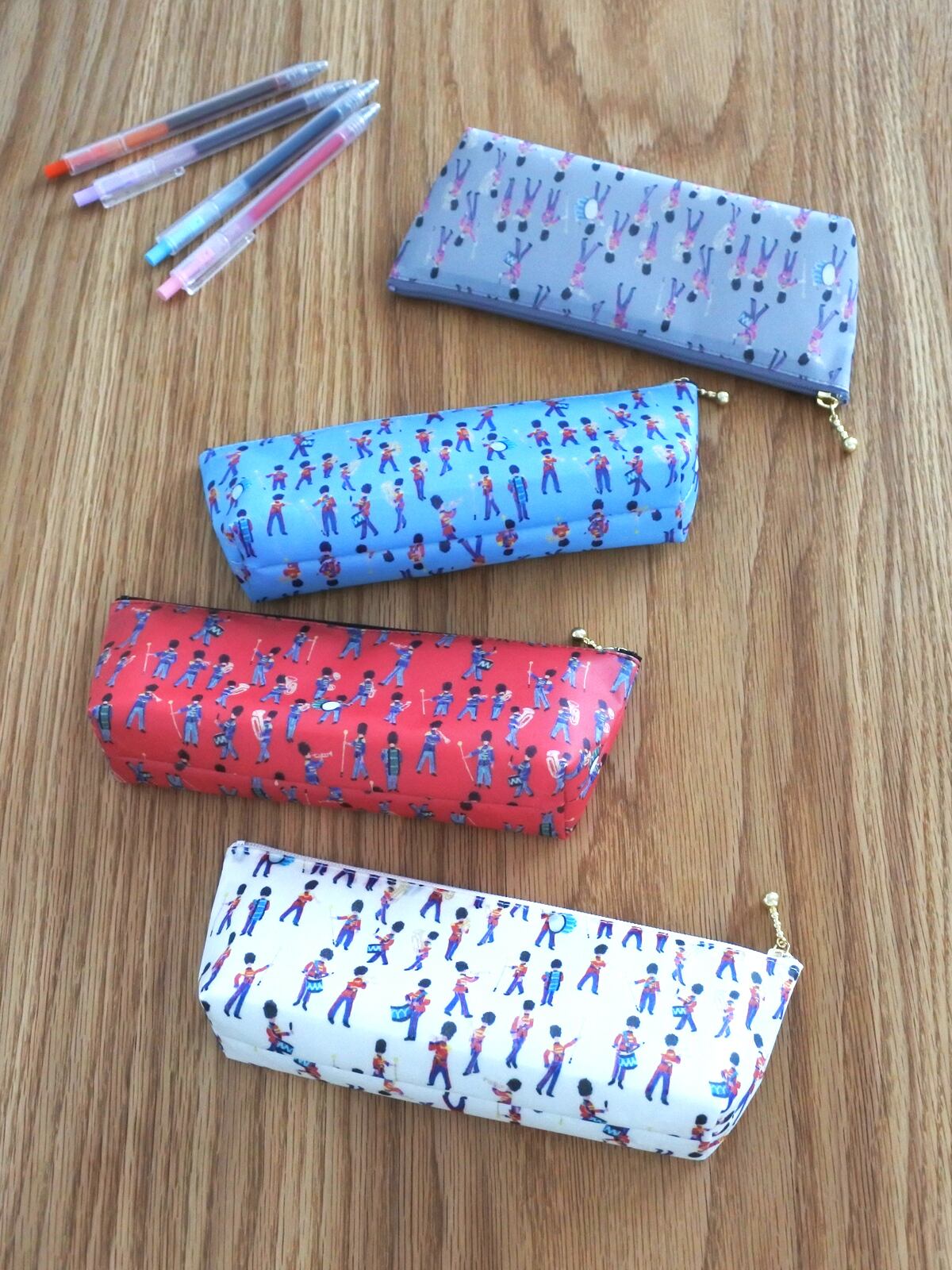 リバティ ラミネートのマチ付きペンケース ミュージカルマーチ|マチあり ペンポーチ ロンドン 兵隊さん 音楽隊 軍楽隊
