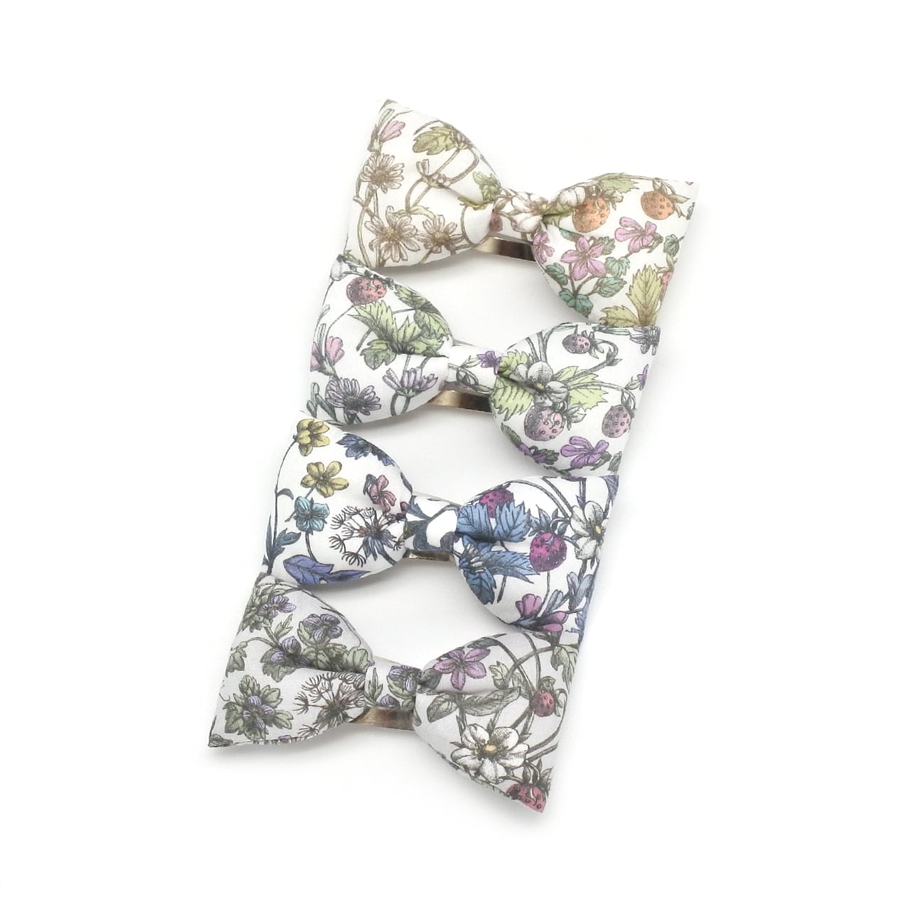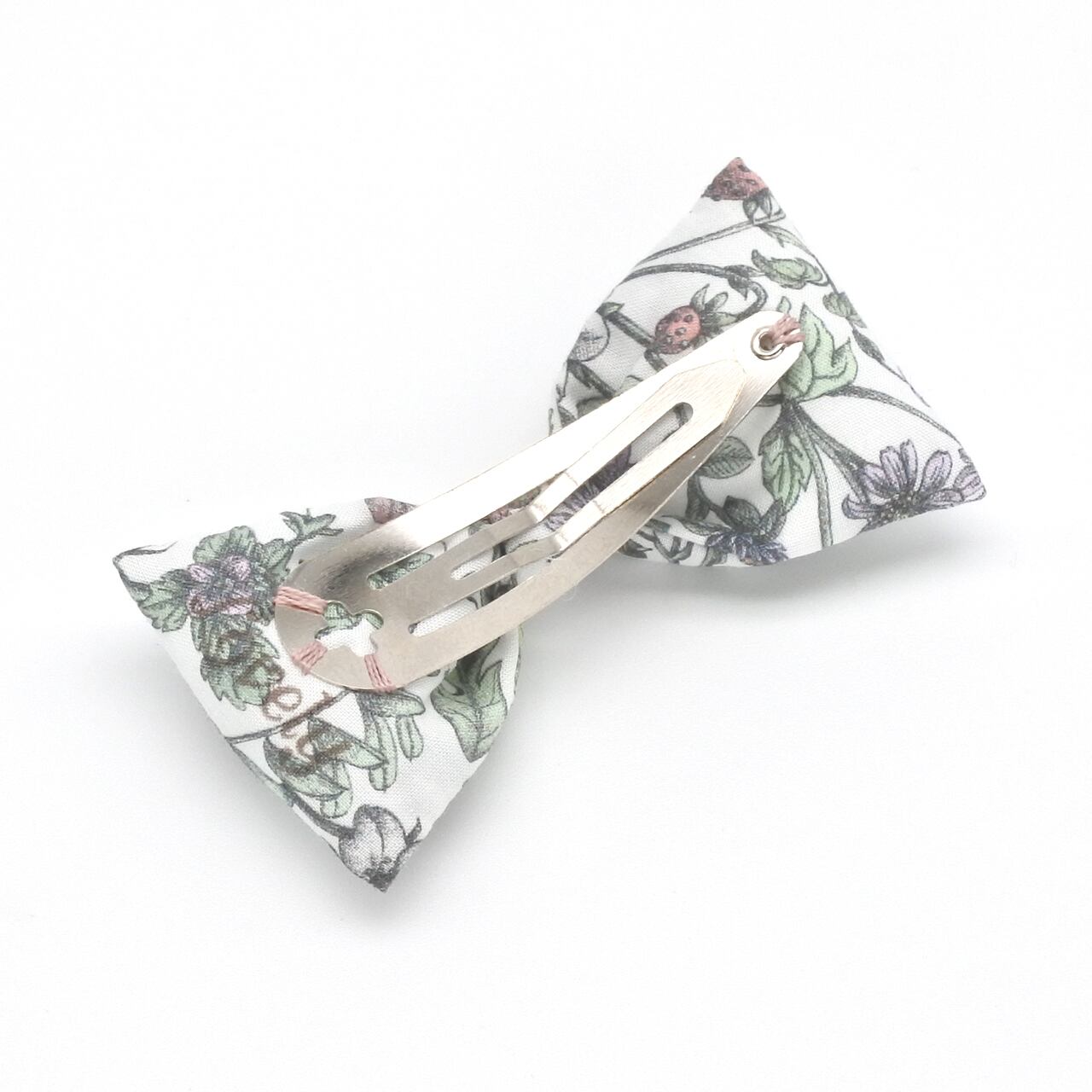 リバティ アンティーク・ガーデン(LIBERTY Antique Garden)のイタリア製タナローン生地を使用した、ぷっくりしたリボンがかわいいヘアピン(スリーピン パッチンピン パッチンどめ パッチン留め)です。