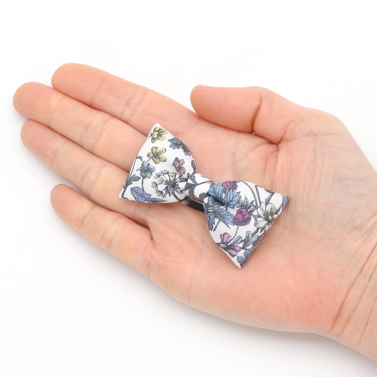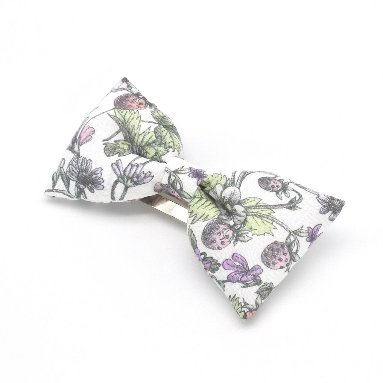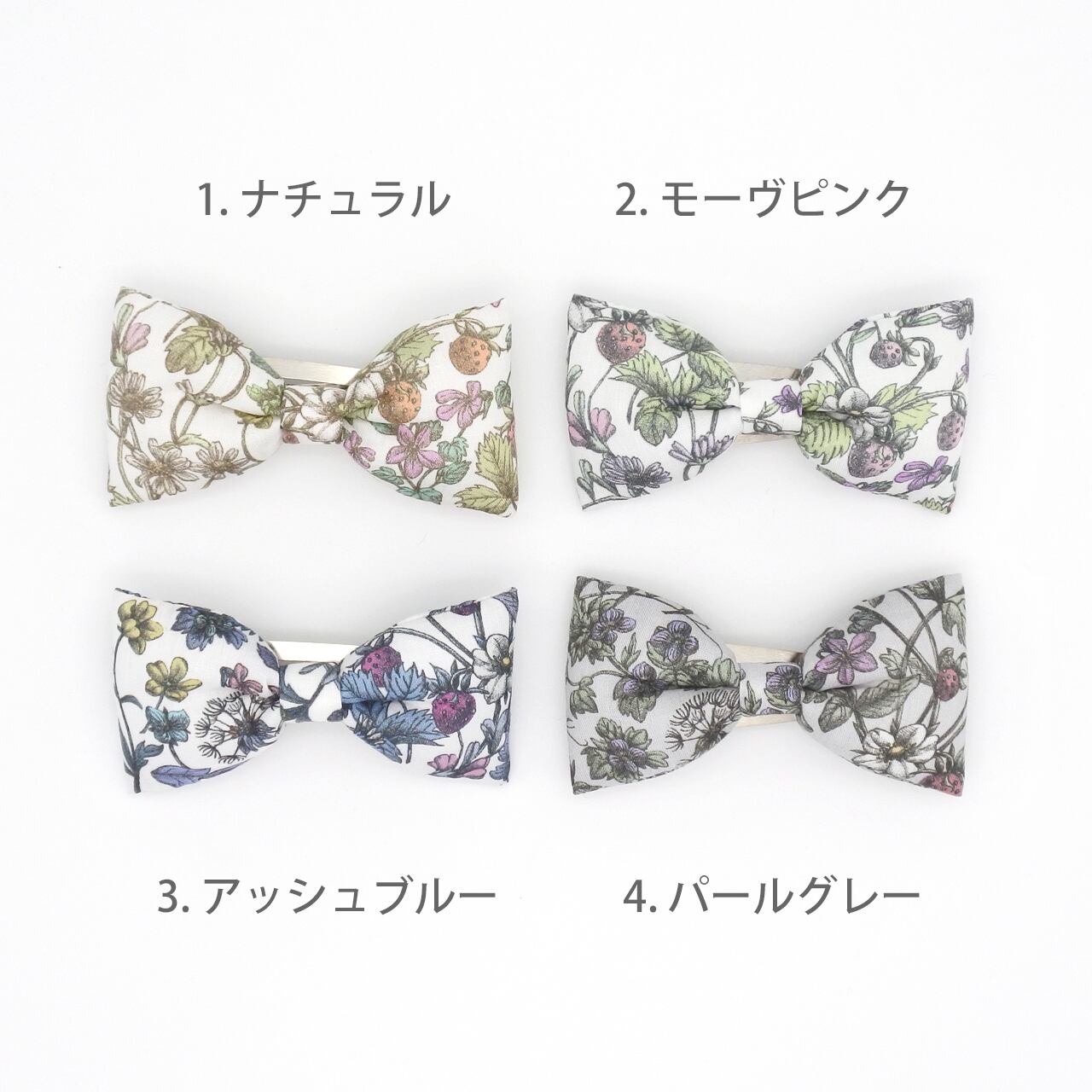 リバティ ぷっくりリボンのヘアピン アンティークガーデン|ベビー キッズから大人まで 名入れ可 ヘアクリップに変更可 花柄 いちご ストロベリー