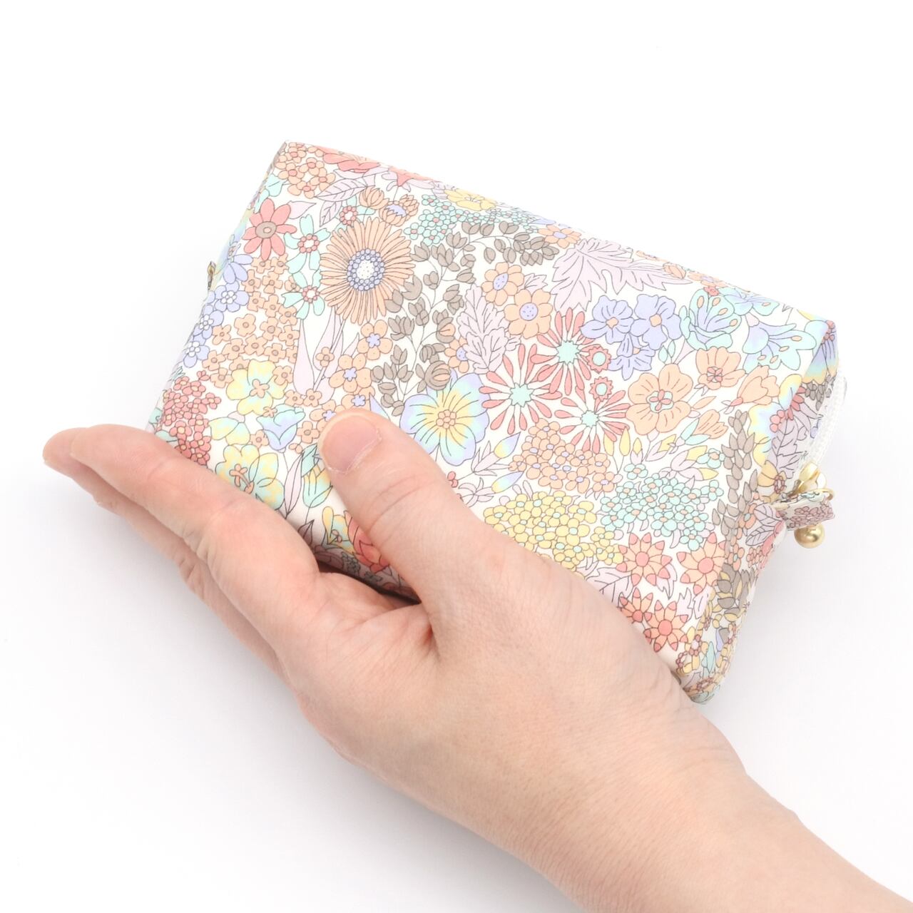 リバティ マーガレットアニー(Margaret Annie)を使用した、小さめのコスメポーチ(化粧ポーチ メイクポーチ)です。