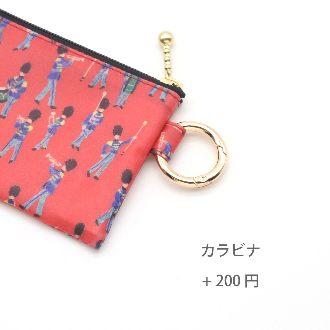 オプションのカラビナ(+200円)をつけるとバッグの持ち手やDカンなどにさっと取り付けられ、持ち運びの利便性がグンとアップ。